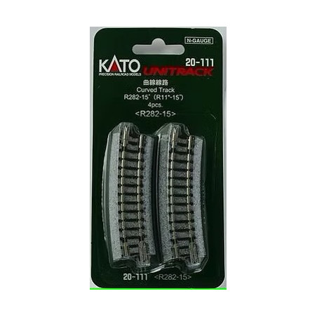 Cuatro tramos de via curva de 282 mm y 15 grados. Tipo UNITRACK. Escala N. Marca Kato. Ref: 20-111. >Posibilidad de adquirir mayores cantidades. Solicitar a info@zaratren.com.